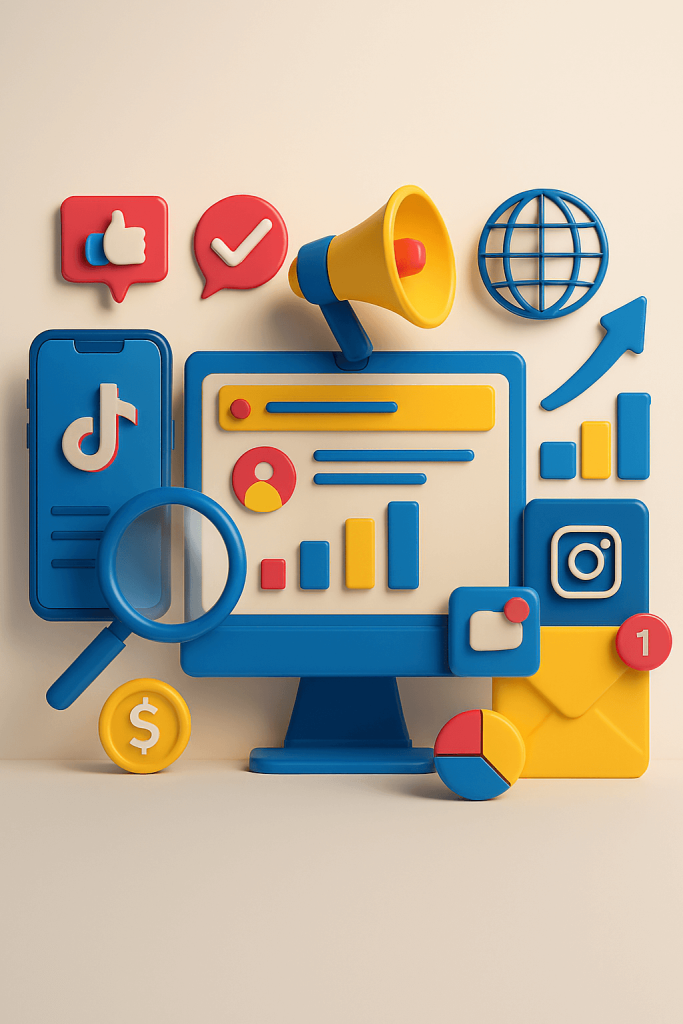 في عصر التحوّل الرقمي، أصبح التواجد على الإنترنت والتواصل الذكي مع الجمهور من أهم ركائز نجاح أي علامة تجارية. نحن في [شركة وجيه للطباعة والدعاية والاعلان] نوفر حلولاً متكاملة للتسويق الرقمي والإلكتروني تساعدك على الوصول إلى جمهورك المستهدف بدقة وفعالية، مع تحقيق أقصى عائد على الاستثمار. من إدارة الحملات الإعلانية إلى تحسين محركات البحث وإنشاء محتوى رقمي مبتكر، نحرص على أن تبرز علامتك التجارية في بيئة تنافسية متسارعة، بأسلوب يجمع بين الإبداع والتحليل الاستراتيجي والنتائج الملموسة.